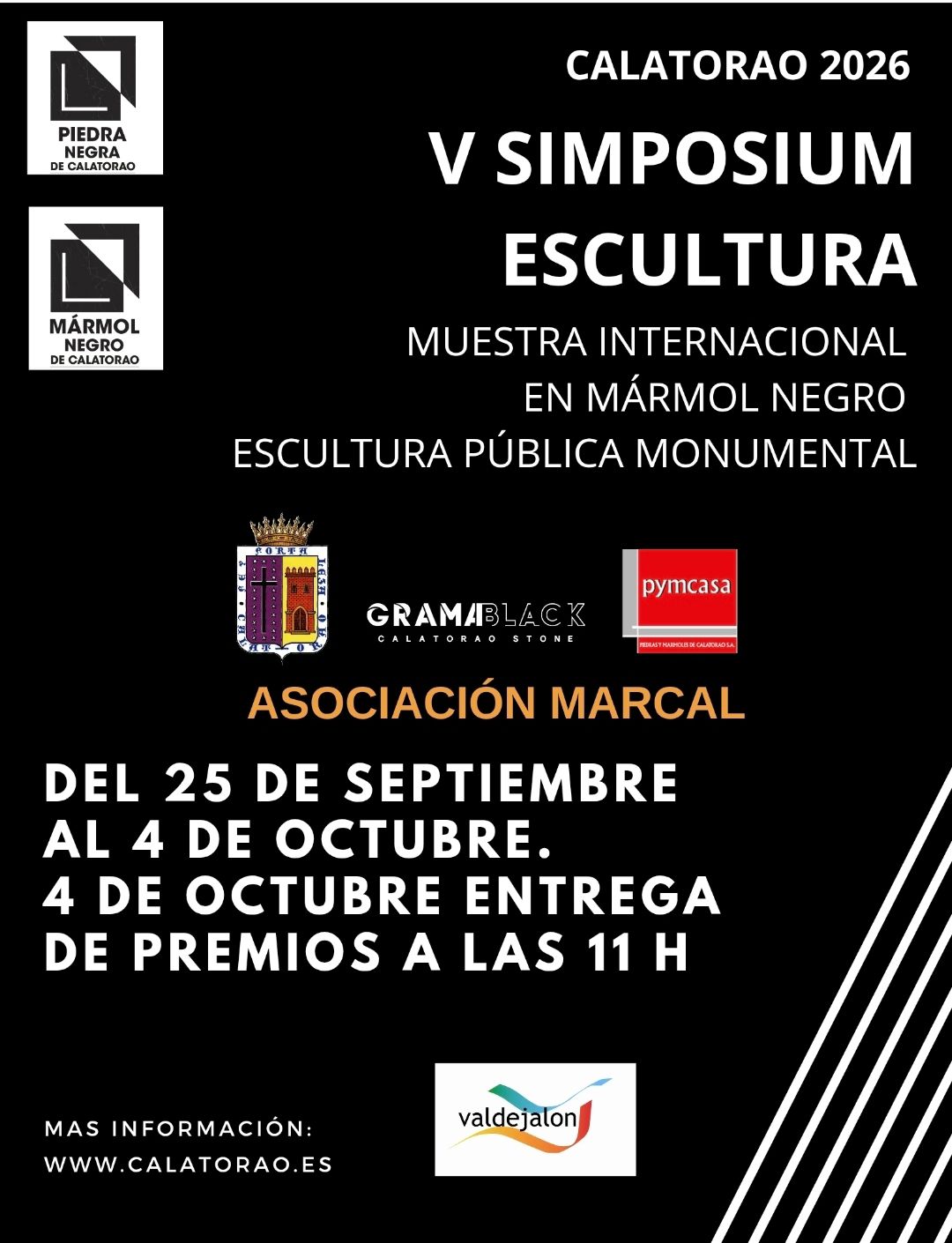 El Ayuntamiento de Calatorao junto con la asociación Marcal, mármol de Calatorao, convoca la quinta edición del simposio internacional de mármol negro de Calatorao. El día 25 de septiembre dará comienzo los trabajos de los cinco escultores que previamente han sido seleccionados por un jurado especializado tanto en artes pictóricas como en escultura. Contamos igualmente como en otras ediciones anteriores, con la presencia del escultor Pedro Ania, que ejercerá como presidente de la cita.