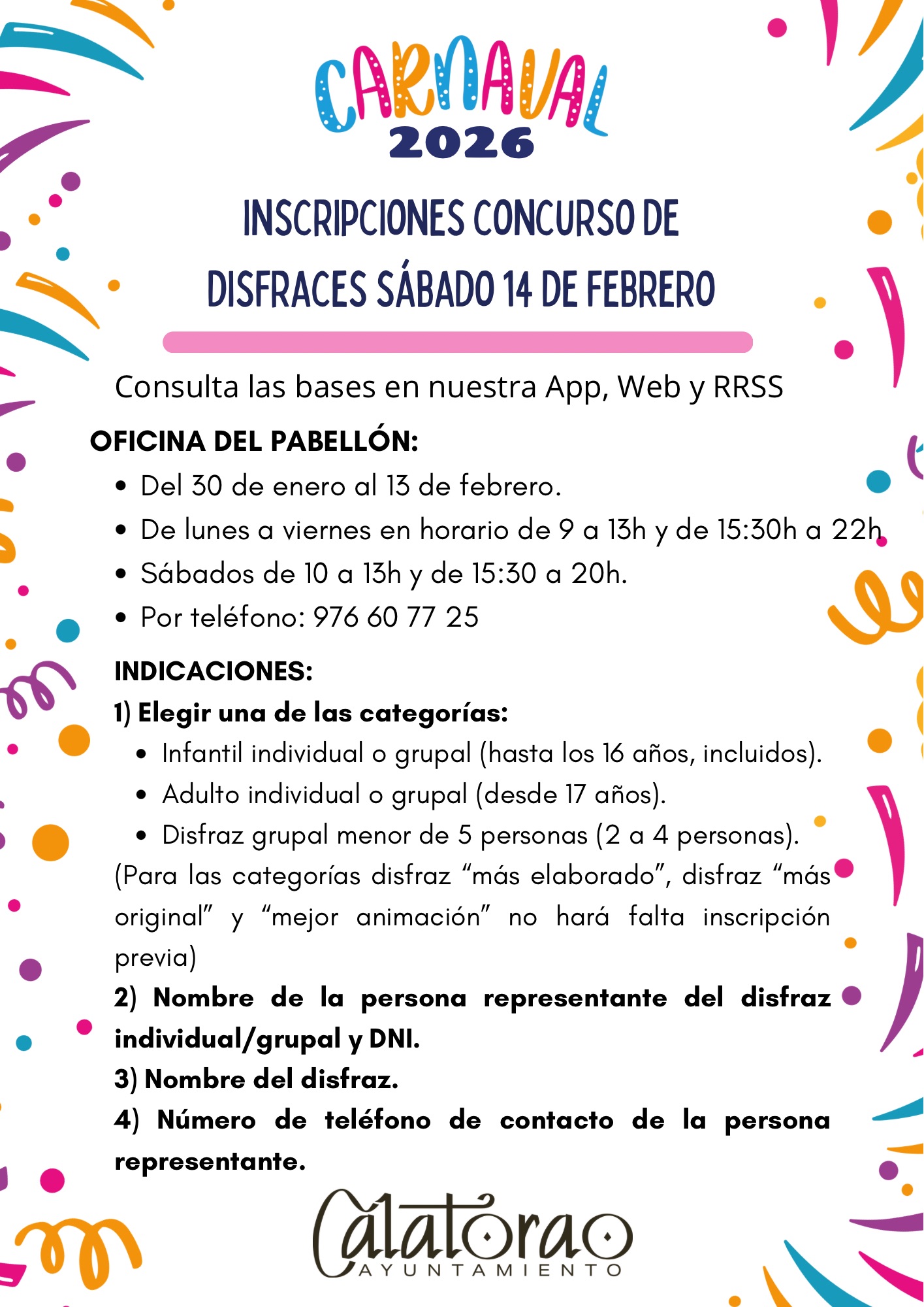 Inscripciones para el concurso de disfraces del sábado 14 abiertas desde mañana, 30 de enero. Este año como novedad, incluimos el premio de “mejor animación”.