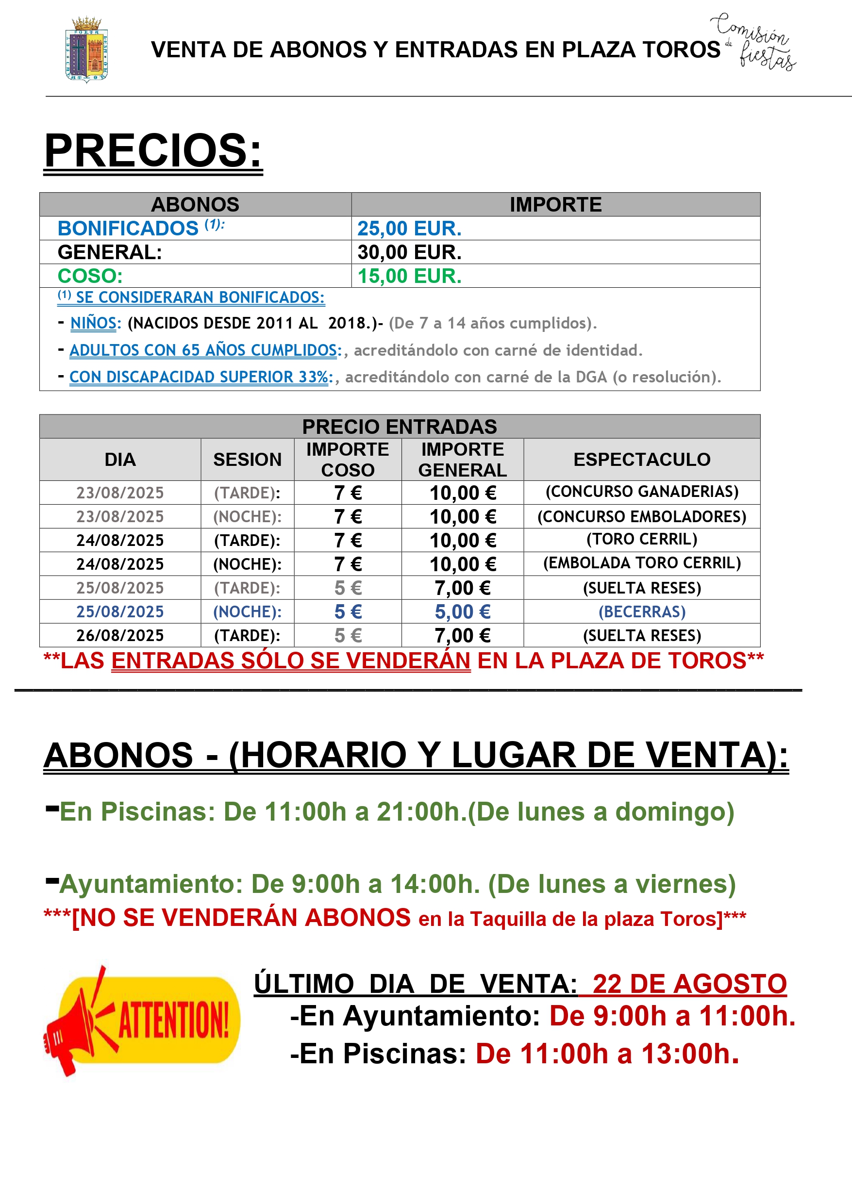- VENTA DE BONOS PARA LA PLAZA Y PROGRAMAS DE FIESTAS 2025